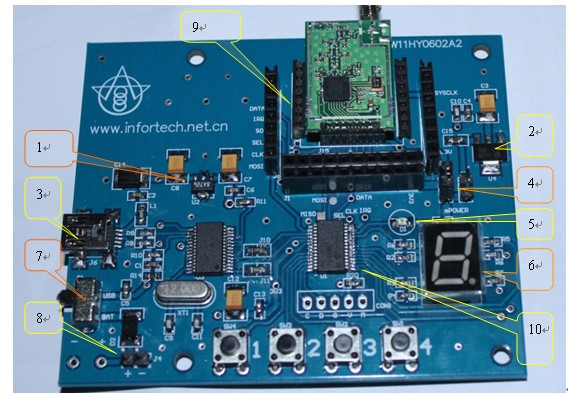 Infortech新RF開發(fā)板,結(jié)構(gòu)簡單,便于攜帶??梢允殖譁y試RF通信距離。